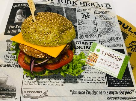 Deze burger is op basis van rode biet en soja, dat voor een unieke smaakt zorgt.